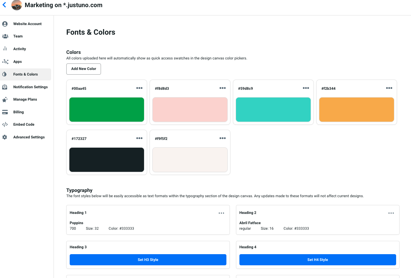 Colors - A pre-defined color palette of your brand colors that automatically assigns a color to elements when you create your onsite designs.