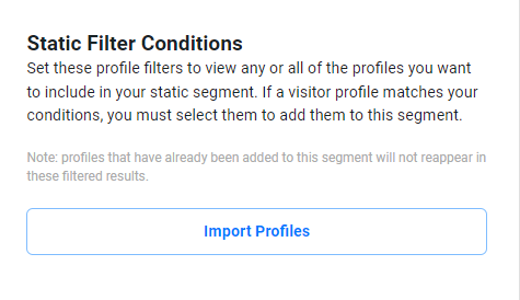 Within a static segment, we have the ability to filter the existing profiles using conditions.
