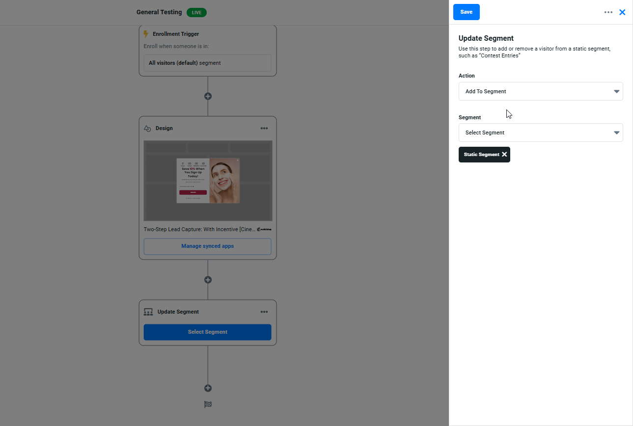 Example Use Case: Enroll first-time visitors into a "New Customer Nurture" workflow, then transition them to a "Loyalty Retargeting" workflow after their first purchase.