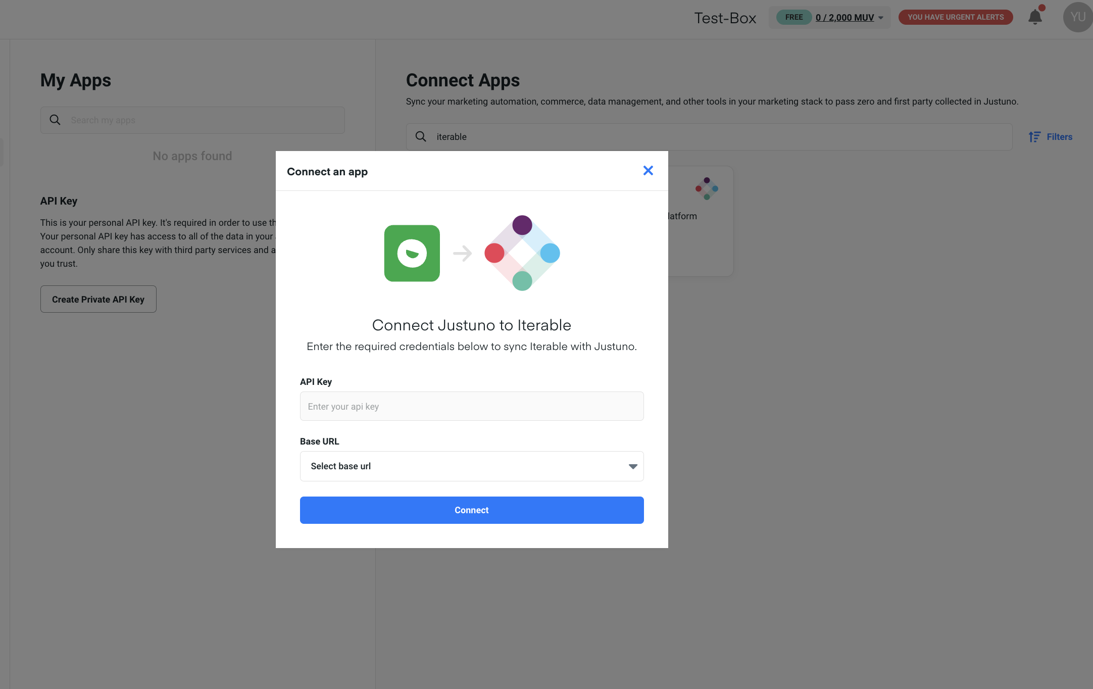 Iterable Project Configuration Before Connecting to Justuno