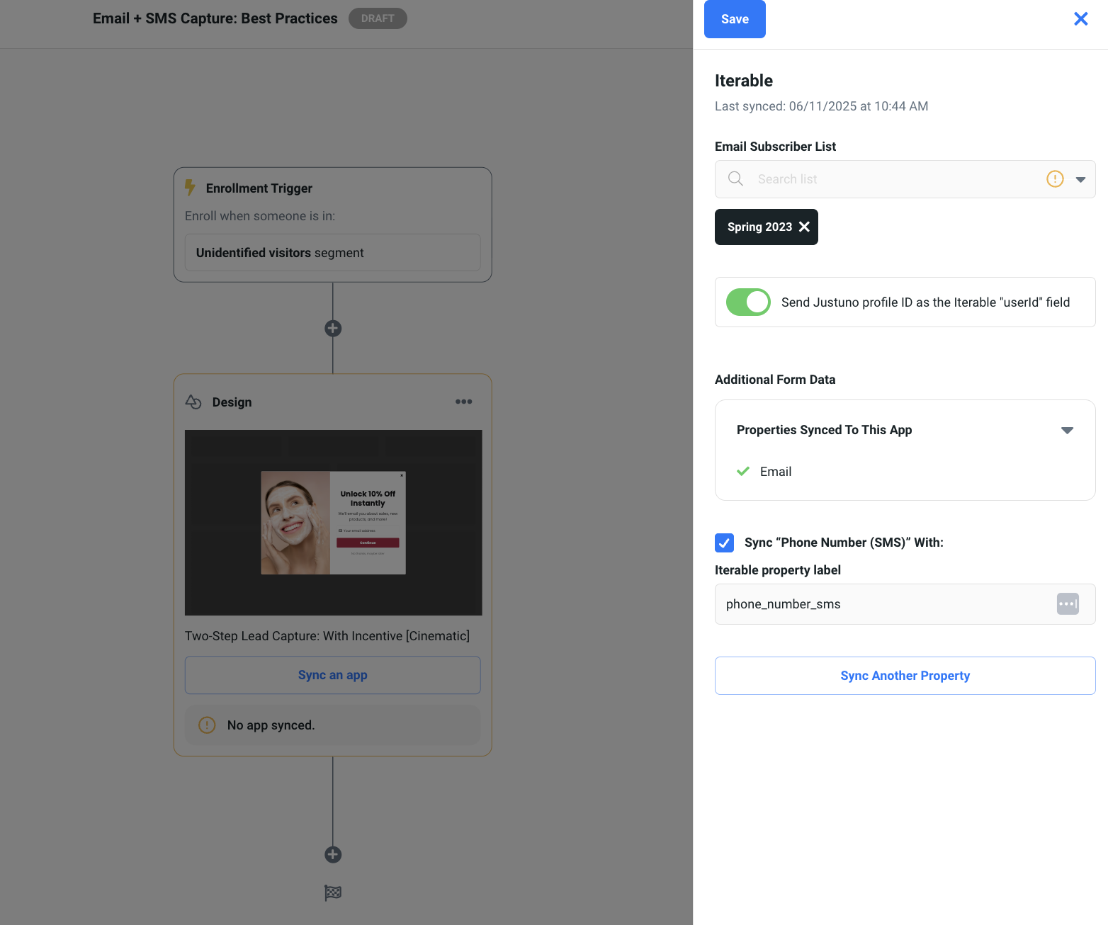 Syncing Iterable to Justuno