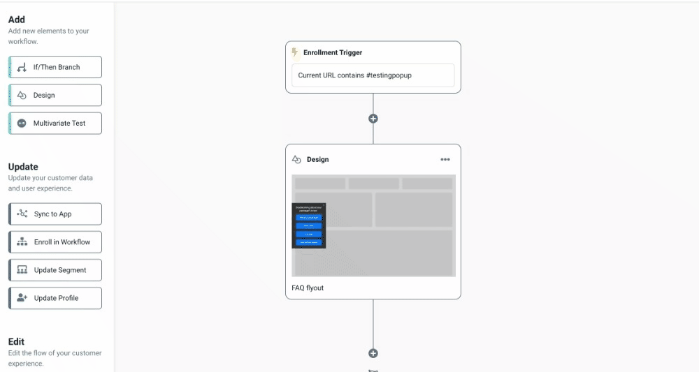 - Live Test - Set up a workflow with the enrollment trigger set to "current URL contains #testingpopup". Publish this workflow and head to your site incognito. Type in your domain and add in the extension you created in the workflow. Example: yourcooldomain.com/#testingpopup. Refresh the page and you'll see your design.