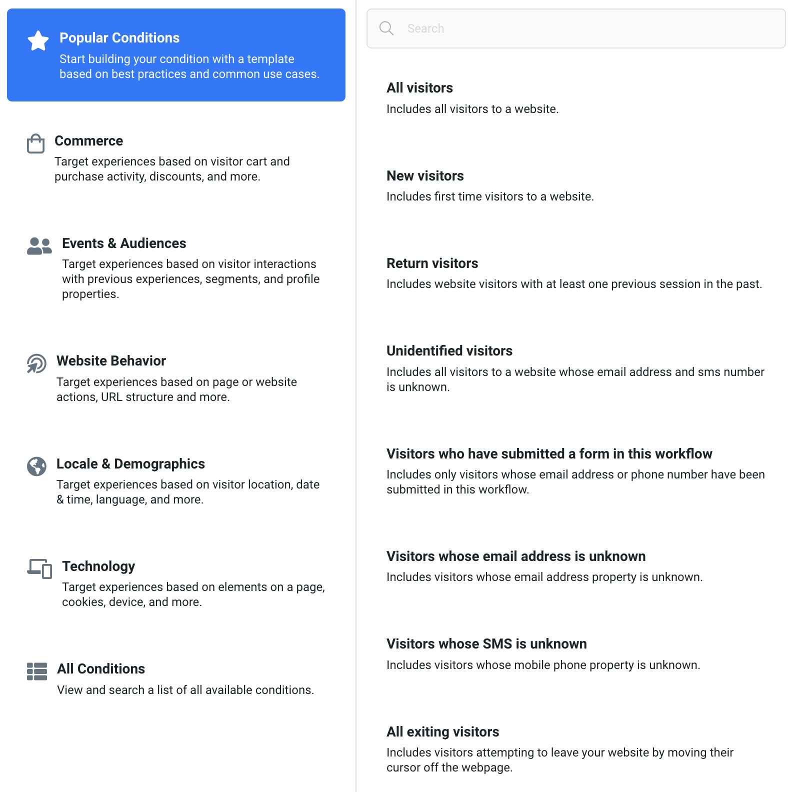 Those workflows can be as simple as showing a lead capture design to any new profile once per session, but as elaborate as workflow that has many many steps utilizing multiple branches, multivariate paths, and many different designs depending on a mix of conditions met or not met by a profile at any specific given time in their journey.