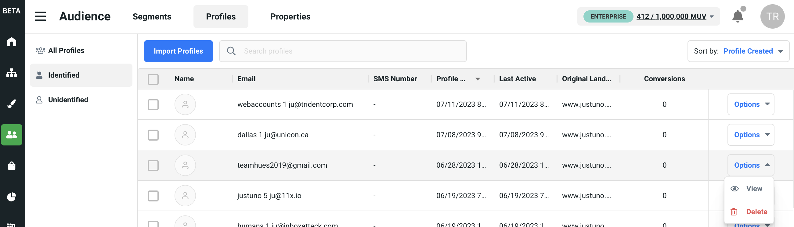 Navigate to the audience section and click the profiles tab at the top. You'll then be able to search your profiles by email in order to view, edit or delete the profile. This is how you will handle privacy requests that conform to CCPA, GDPR and other regional privacy laws related laws. You may also import/export profiles from this area as well.