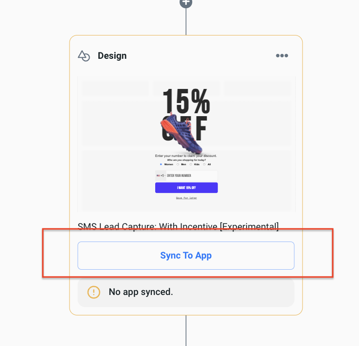 4. Click on Sync to App on the design tile to open the slide out options to sync to Klaviyo