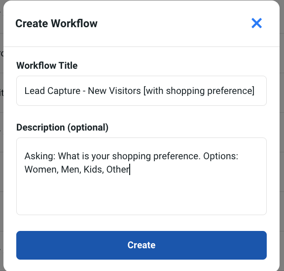 2. Fill out the blank workflow fields below: Workflow Title and Description. Click Create