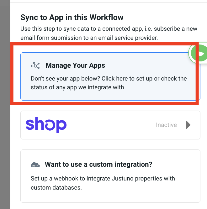 5. Click on Manage Apps from the slide out