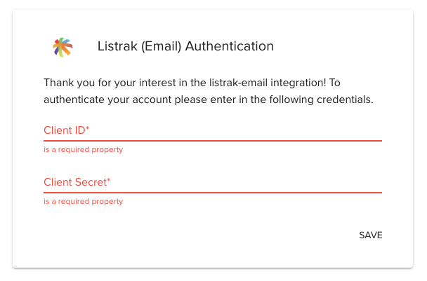 2. As soon as you click on your desired app (email or SMS) you'll be prompted to authenticate your account by entering your Client ID and Client Secret.
