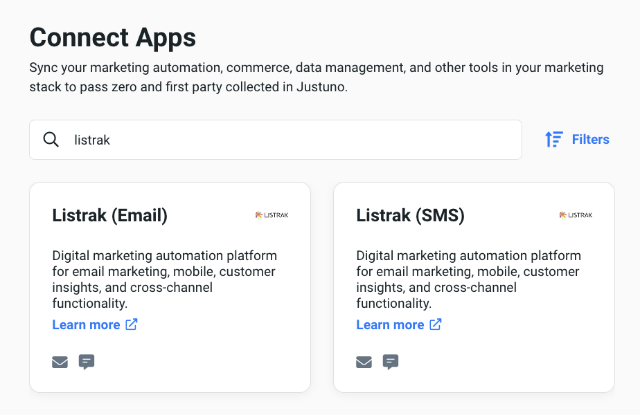 This article will cover how to connect Listrak (Email & SMS) to Justuno, available functionality, and any additional requirements.