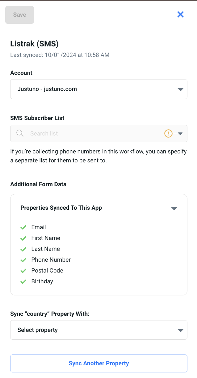 When you click on Sync Another Property you'll see a dropdown appear where you can then sync your Justuno properties with existing Listrak Properties. (Example: shopping preferences, quiz answers, birthday, social handle, etc.). You'll have to create fields in Listrak before you can see the in Justuno.