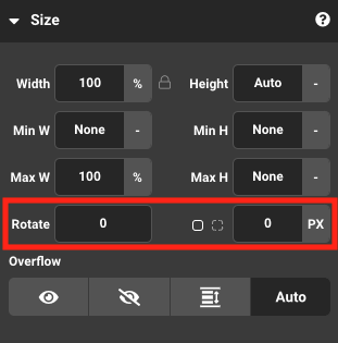 Rotate allows you to manipulate the degree of rotation on the selected container.