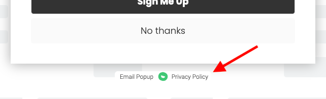 For security reasons, beneath each Justuno design is a link to our privacy policy and terms of service. Users have the option to reposition or remove this at their own discretion.