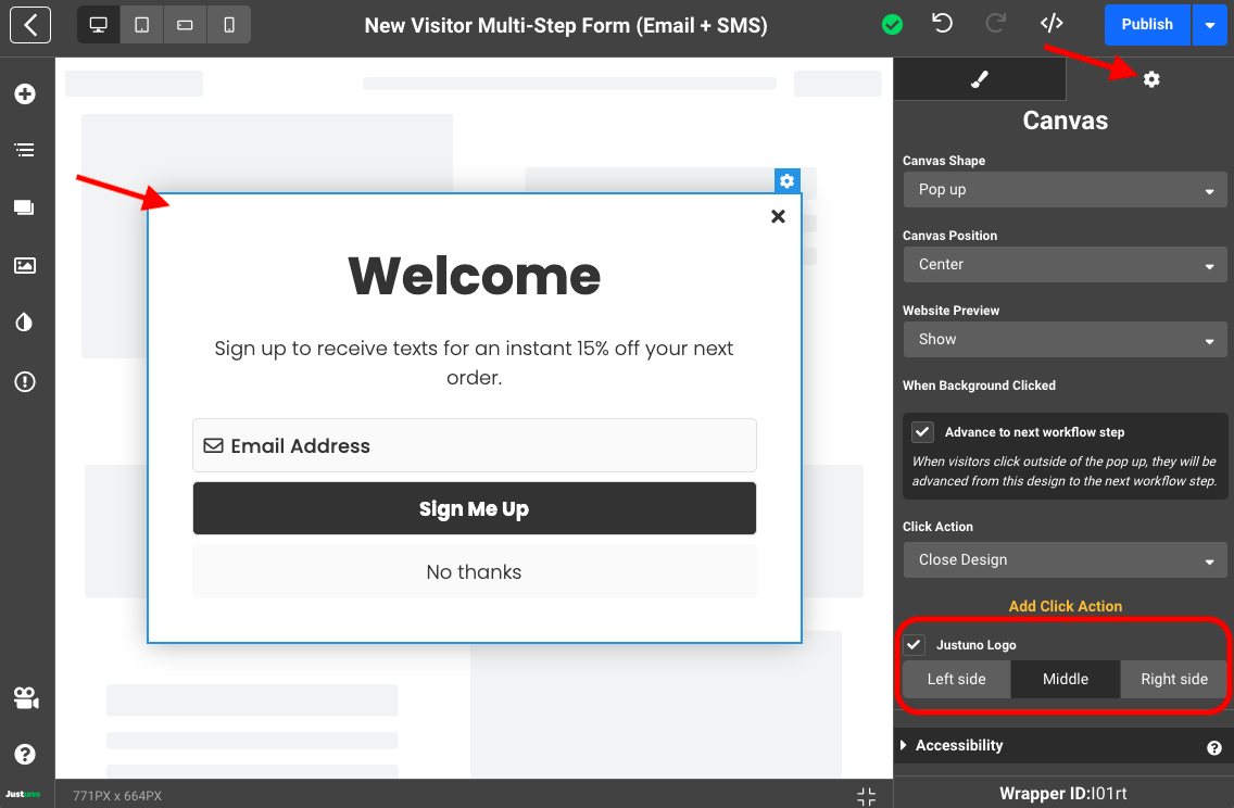 This Justuno support article will cover how to reposition or remove the Justuno watermark logo from your design.