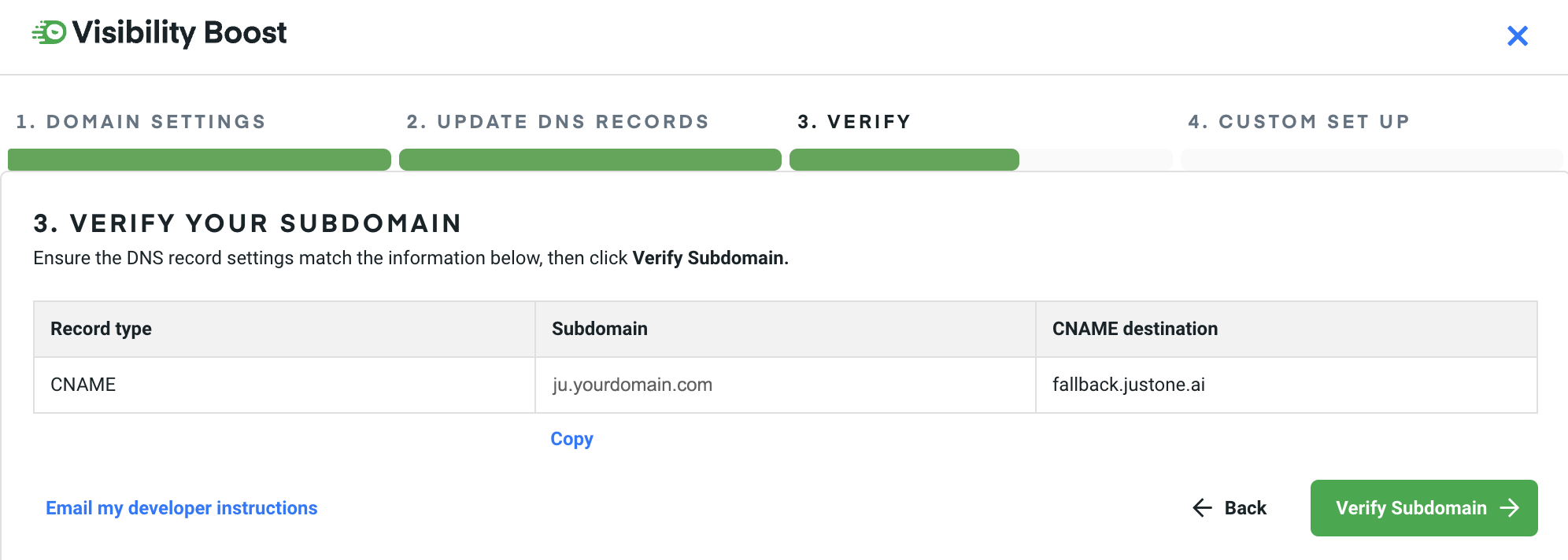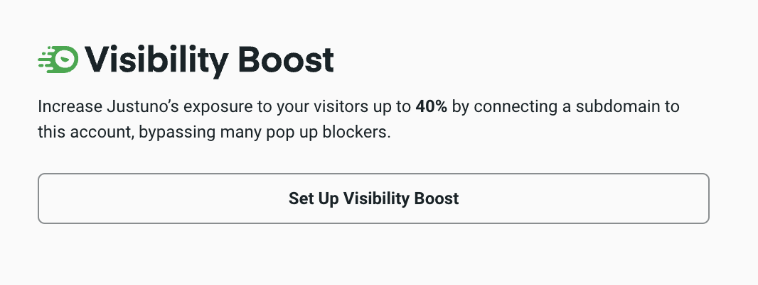 Justuno's Visibility Boost feature enables all Justuno activity to be visible on your website via a subdomain to thwart these blockers. Effectively loading all Justuno-related files from your own custom subdomain. If your website is "www.yourdomain.com", your subdomain might look something like "ju.yourdomain.com" or any other subdomain of your choosing. Loading content from subdomains is a standard practice for website utilizing CDNs and has always been considered ethical.