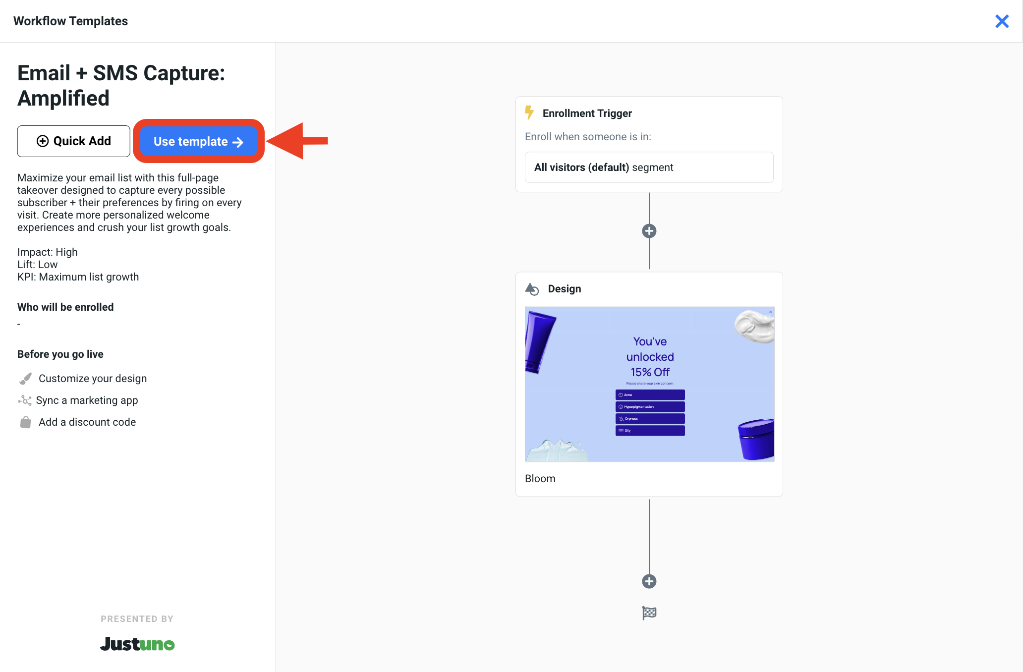 Click here to access this template. If prompted, make sure you are logged into your Justuno account.