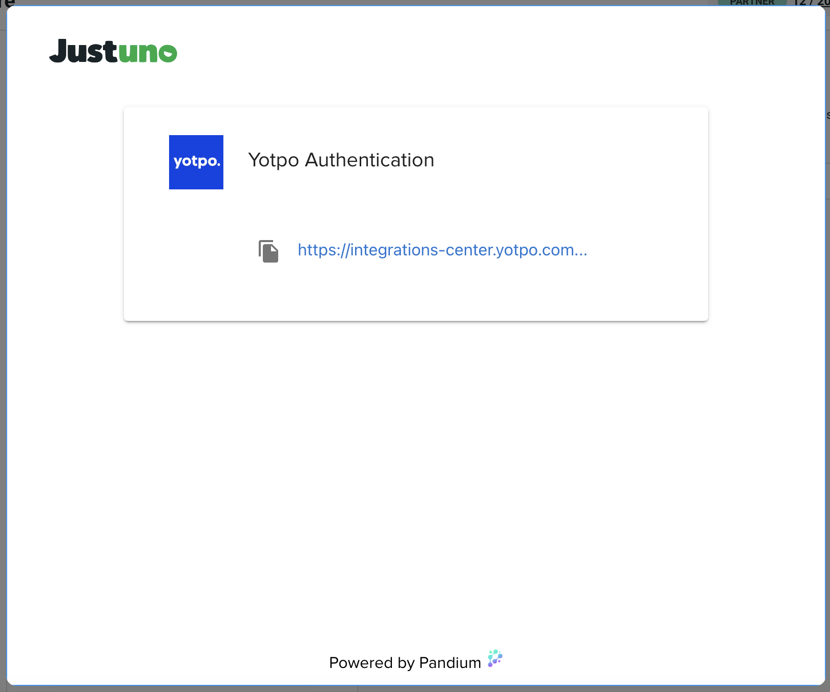 As soon as you click on Yotpo you'll be prompted to login to your Yotpo account in another tab. If the tab doesn't automatically open then click on the link in the authentication box.