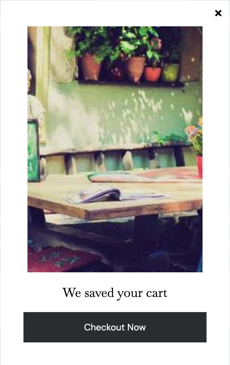 The Returning Cart Abandonment Reminder does just that by targeting all return visitors with a reminder of their cart contents from their previous visit.