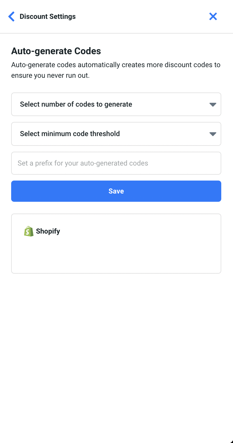 Discount codes can either be added manually or synced from your e-commerce provider.