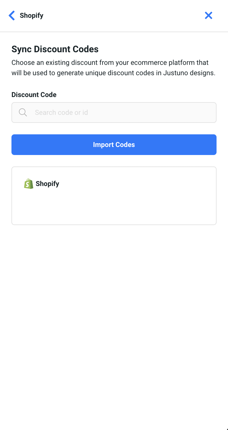 NOTE: The option to sync codes is currently available only to Justuno app installations from Shopify, BigCommerce, Magento and WooCommerce.