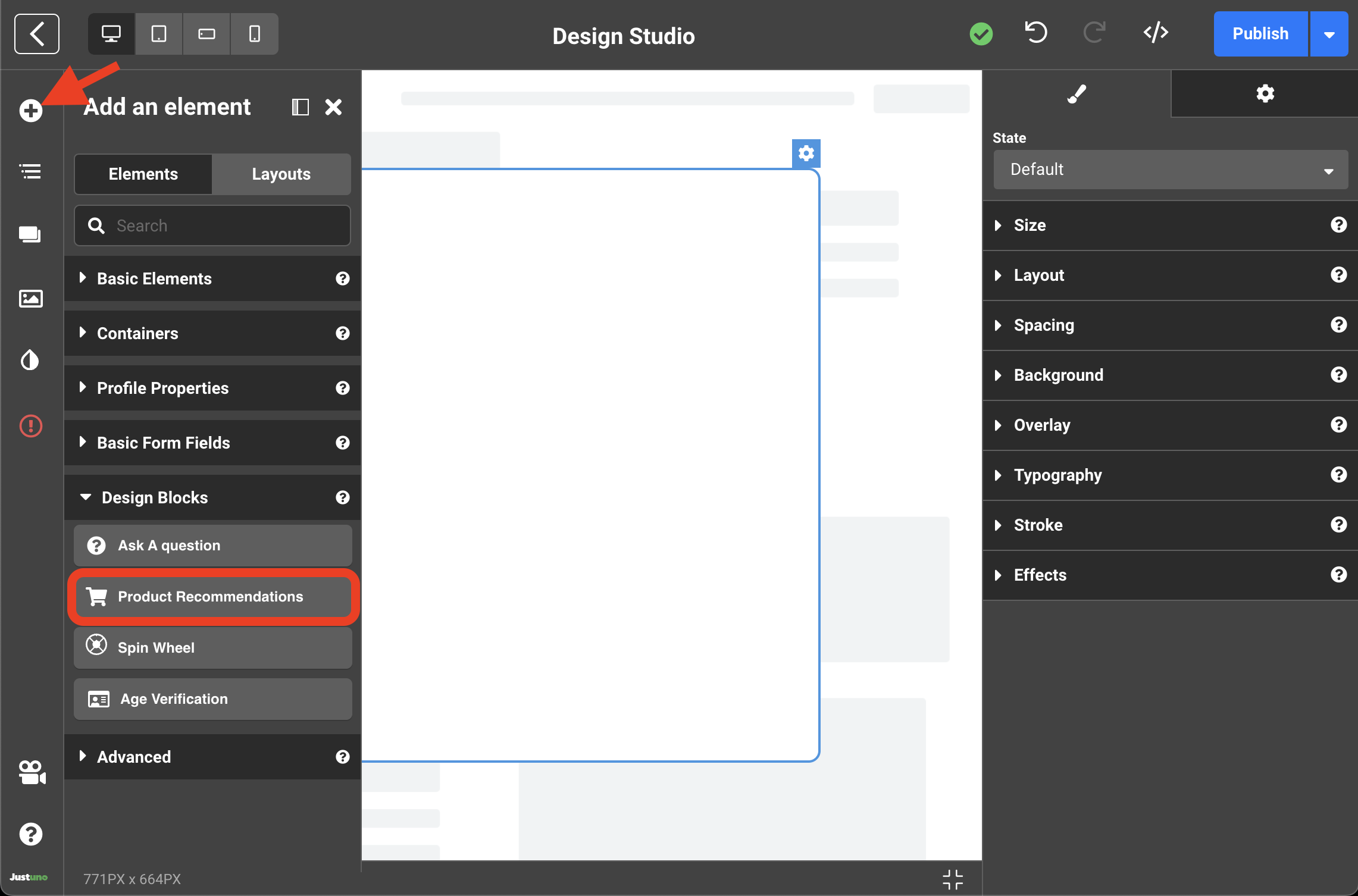 In this Justuno support article, we walk through how to add and edit a product recommendation element in the Justuno Design Studio.