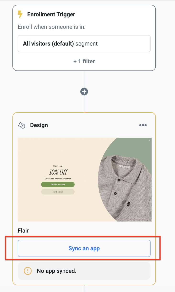 Now to the workflow. In the design step of the workflow, select the Sync to App option. In the side menu, find the Emotive app and click on Add.