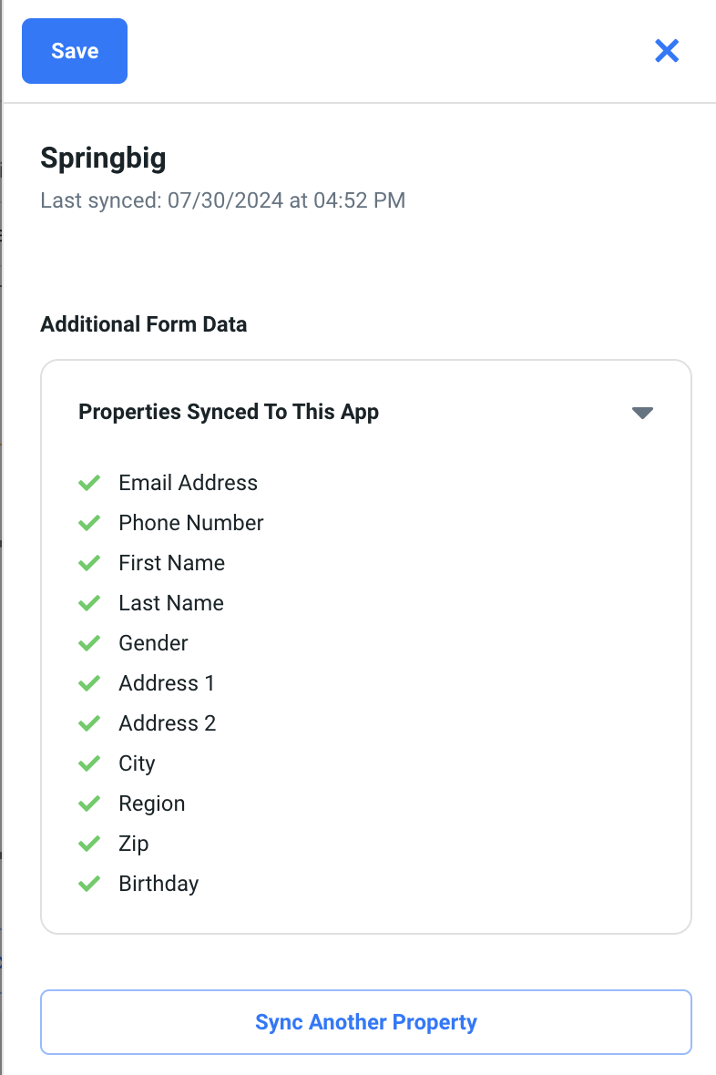 Custom sync properties from your Justuno design to the properties in your Springbig app. (example: social handles, birthday, shopping preferences, survey/quiz responses, etc.). These properties are considered 0 party data or 1st party data. Learn more about visitor data collection and how to use this data in campaigns.