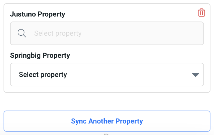 When you click on Sync Another Property you'll see a dropdown appear where you can then sync over a Justuno Profile Property as a Springbig User interest. This is essential a way to tag your Springbig Users for further segmentation. You are able to select multiple Justuno Properties to the interests field.