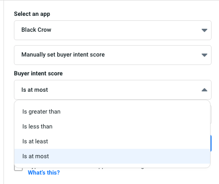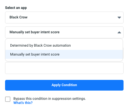 7. Select "Black Crow" from the dropdown list. You'll have the option to manually set buyer intent score or allow the Black Crow automation to take place.